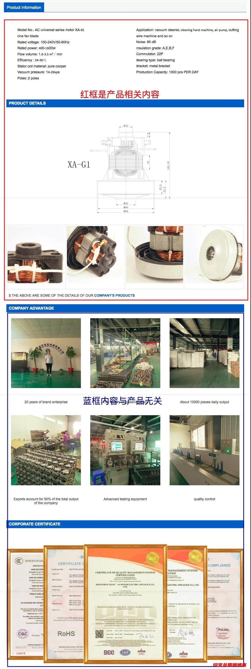 這種產(chǎn)品說明基本上不會有轉化,關于產(chǎn)品專業(yè)內(nèi)容介紹太少,放的都是工廠圖片和證書,跟產(chǎn)品沒有太大關系,客戶在這個頁面里找不到他想要的產(chǎn)品內(nèi)容,所以很難有轉化。